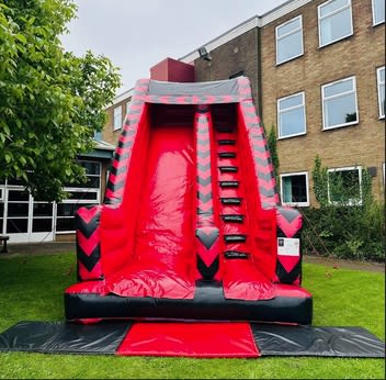 There’s no point in doing things half-hearted when it comes to inflatable thrills. You want heart pounding action. You want exhilarating excitment. You want screams and shrieks from every slider. Which means you need the Red and Black Mega Slide, available for hire in