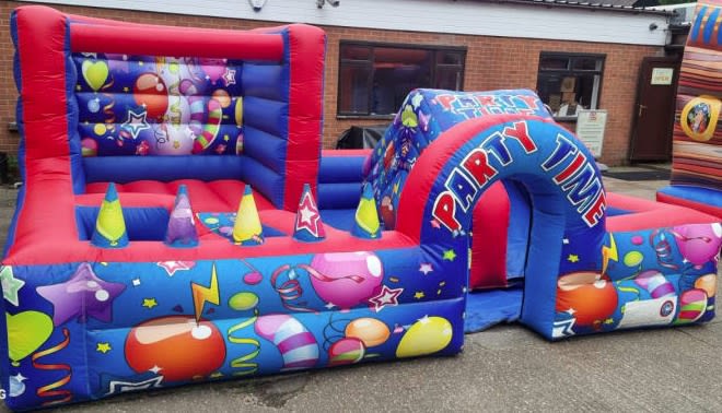 Toddler play park for hire in Barton, Hull, Scunthorpe, Grimsby, Cleethorpes and Doncaster So many ways to play! Enjoy hours of entertainment Can’t decide between a bouncy castle, a mini slide or a ball pool for you little one’s big day? Well you don’t have to choose, because you can have them all in one amazing inflatable, which will have them splashing and sliding, jumping and giggling all day long! This incredible inflatable toddler play park, for hire in Barton and beyond, is the ultimate in big fun for little people. A little of everything The toddler play park for hire includes a mini bouncy castle with high sides for safe bouncing. You also get a mini slide to clamber up and swoosh back down. Plus there’s a ball pool built into the corner, complete with five mesmerising air jugglers that will float the balls in the air like magic. The whole thing comes compact and complete, surrounded by inflatable sides to stop your toddlers toddling off the second your back is turned! Just add the birthday boy or girl and their guests, and watch as they have the time of their lives. Pop-up creche The inflatable play park is a great centrepiece for any party, and it also makes a marvellous pop-up creche at larger events like family get-togethers and charity fairs. With the kids having so much fun, the grown-ups can relax with friends and family and have a great time too. Why not hire one as a treat for your pre-school or playgroup, or you could get together with the other mums and hire one just for fun one weekend. Between a group of you, it’s just a few pounds each. Book now You can book your all-in-one fun right now by simply clicking below to check availability and select your date. Alternatively, give us a call for more Barton toddler party hire ideas. Whether you're in Kirton, Crowle, or Grimsby, Infl8 Hire provides Bouncy Castles with professional delivery and setup.