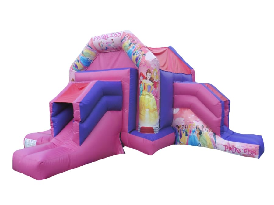 Twin slide princesses bouncy castle for hire in Barton, Hull, Scunthorpe, Grimsby, Cleethorpes and Doncaster