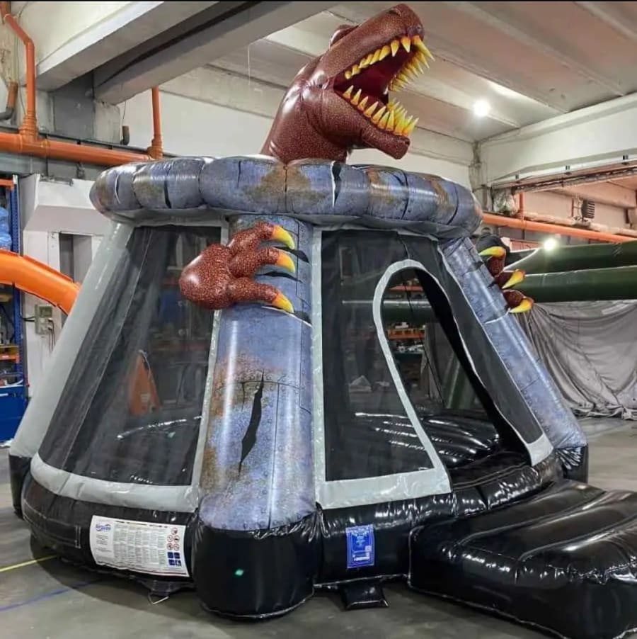 If you want Barton bouncy castle hire that really stands out, then this 3d dinosaur bouncy castle towers above the competition. The mighty tyrannosaurus is bursting through the roof with rows of massive teeth, while its claws reach out around the sides to tear at the walls. Inside there’s a huge bouncing space with net sides all around where they can roar and scream beneath the massive monster