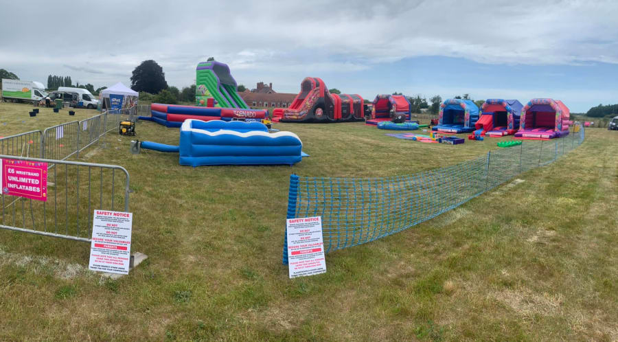 We can only set up inflatables on real grass. This is essential for securing the equipment properly with the correct anchorage, ensuring everyone’s safety throughout the hire.